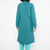 Wool-blend button-down long coat with a loose fit, high collar, and long dolman sleeves. It includes front welt pockets, with contrasting colour bias binding to cover inner seams. It is not lined.