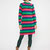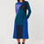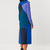 Langes Strickkleid in A-Linie mit kontrastfarbigen Einsätzen. Mittelschwerer Strick mit Rundhalsausschnitt und langen Ärmeln, gefertigt aus 100 % Bio-Baumwolle. Erhältlich in zwei Farbvarianten: Neon Grün/Braun und Blau/Violett.