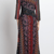 Das schmal geschnittene Oberteil macht bei diesem meisterhaft gefertigten Kleid Platz für den prächtigen A-Linien-Rock. Das bemerkenswerte asymmetrische Ornamentmuster auf der Brust verleiht ihm eine einzigartige, künstlerische Note.